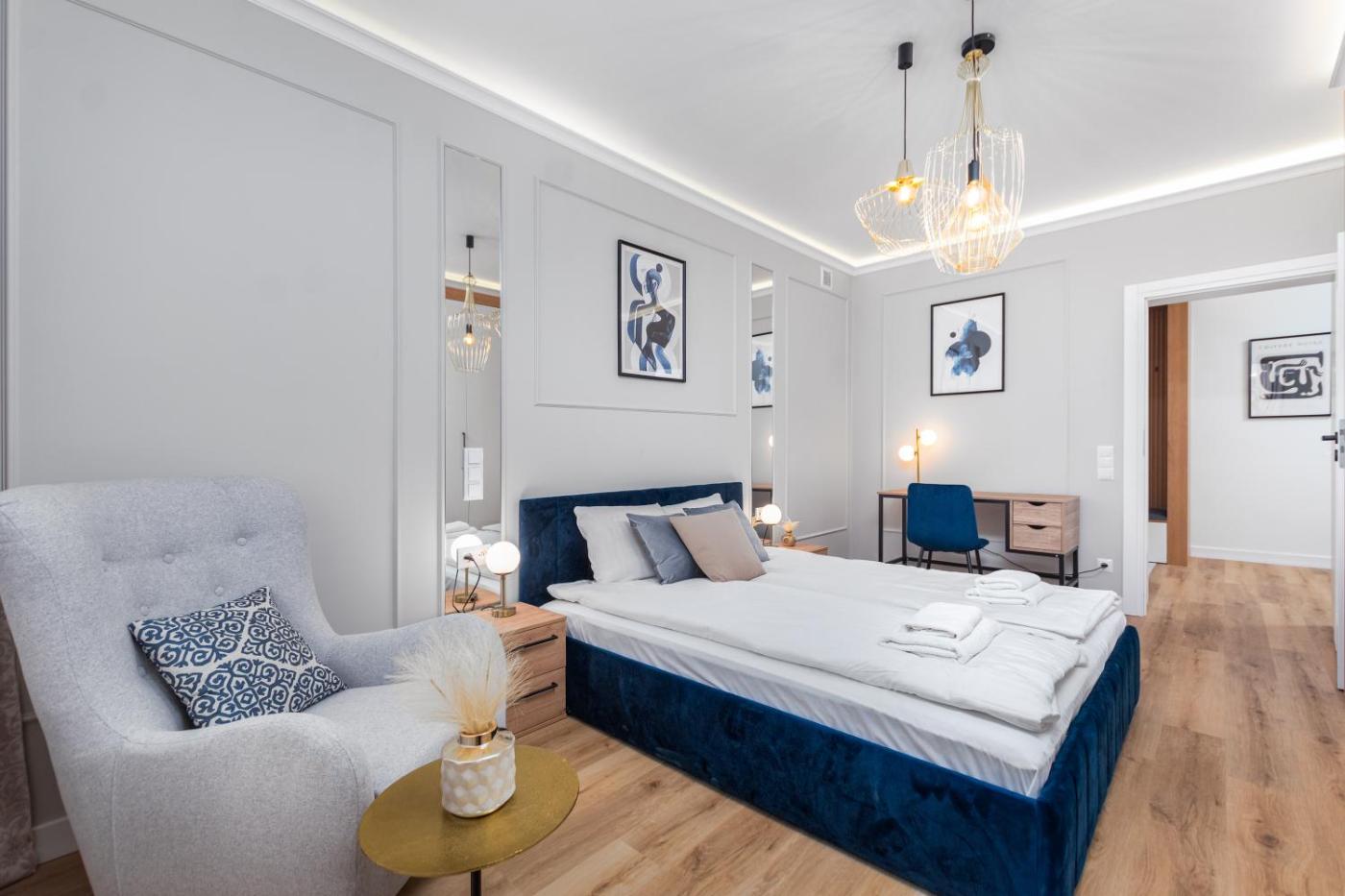 Oferta apartamentu obejmuje kilka sypialni (2), salon, kuchnię z pełnym wyposażeniem, w tym lodówką i czajnikiem, a także łazienkę (1) z prysznicem oraz suszarką do włosów. W apartamencie zapewniono ręczniki i pościel.